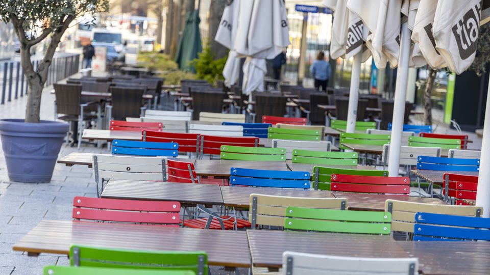 Leeres Straßencafé in Stuttgart