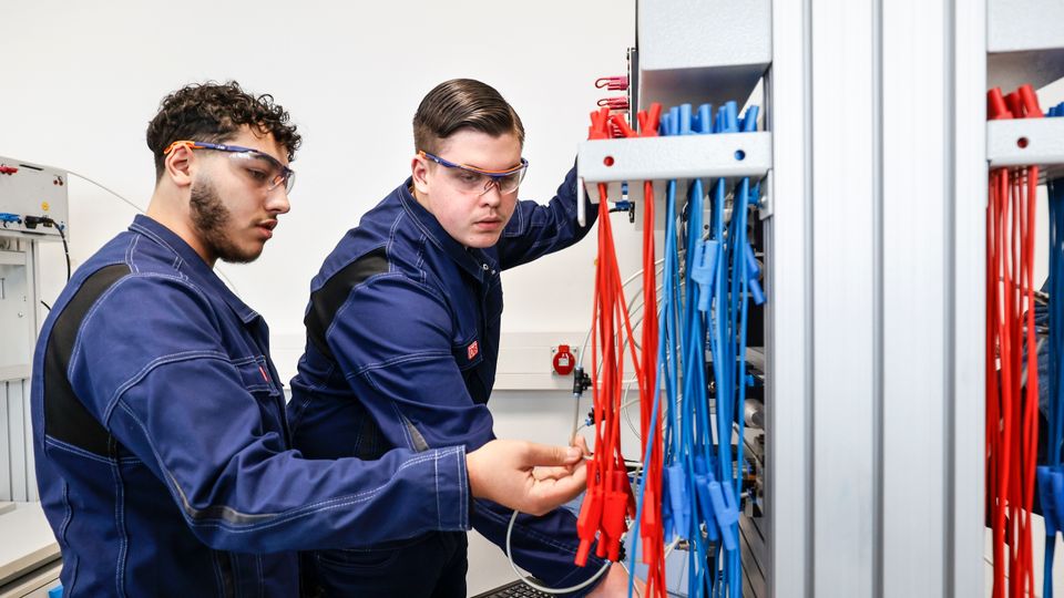 Auszubildende in einer Ausbildungsstätte der Deutschen Bahn für gewerblich technische Berufe